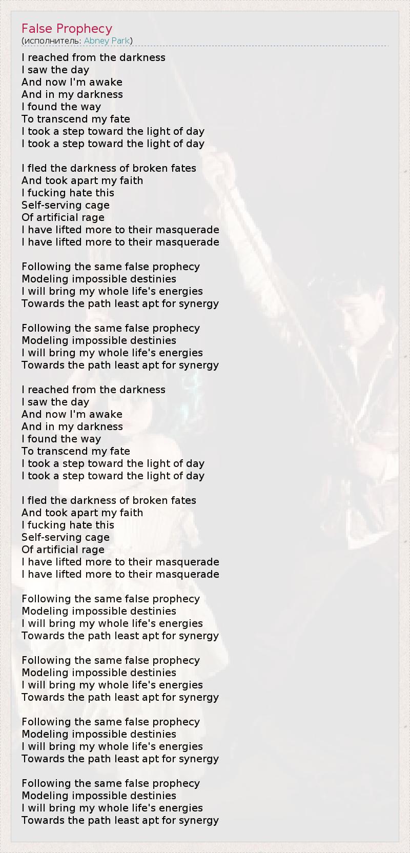 А как ты думаешь, о чем песня "False Prophecy" ?