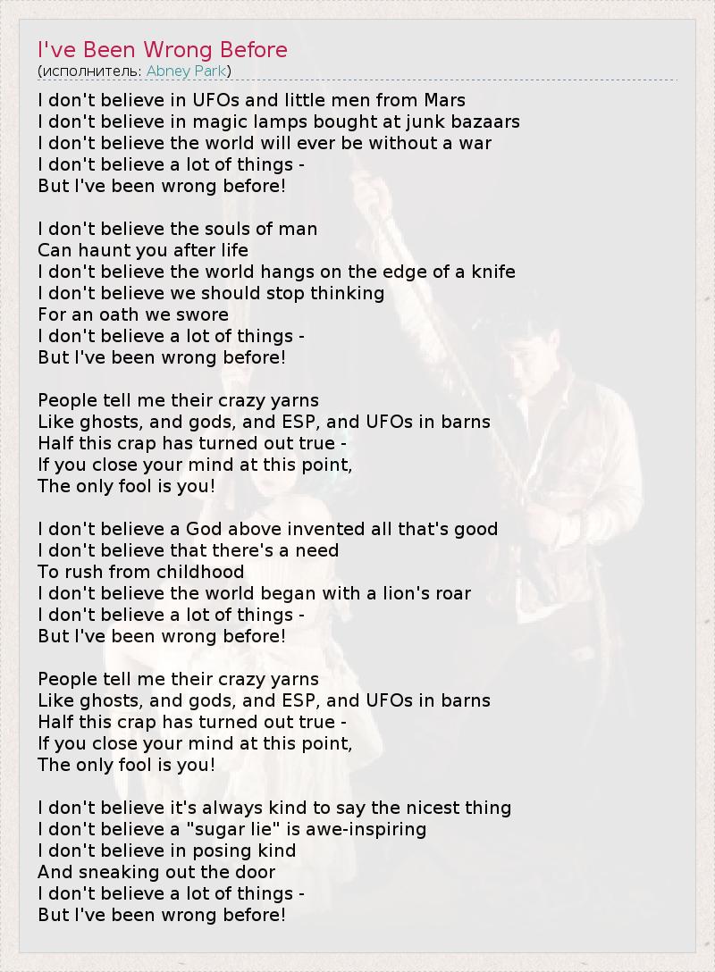 А как ты думаешь, о чем песня "I've Been Wrong Before" ?