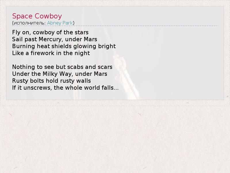 А как ты думаешь, о чем песня "Space Cowboy" ?
