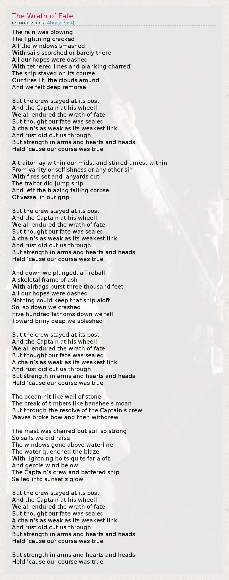 А как ты думаешь, о чем песня "The Wrath of Fate" ?