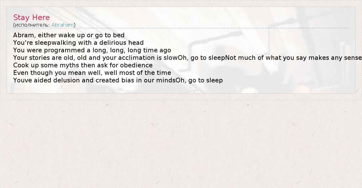 А как ты думаешь, о чем песня "Stay Here" ?