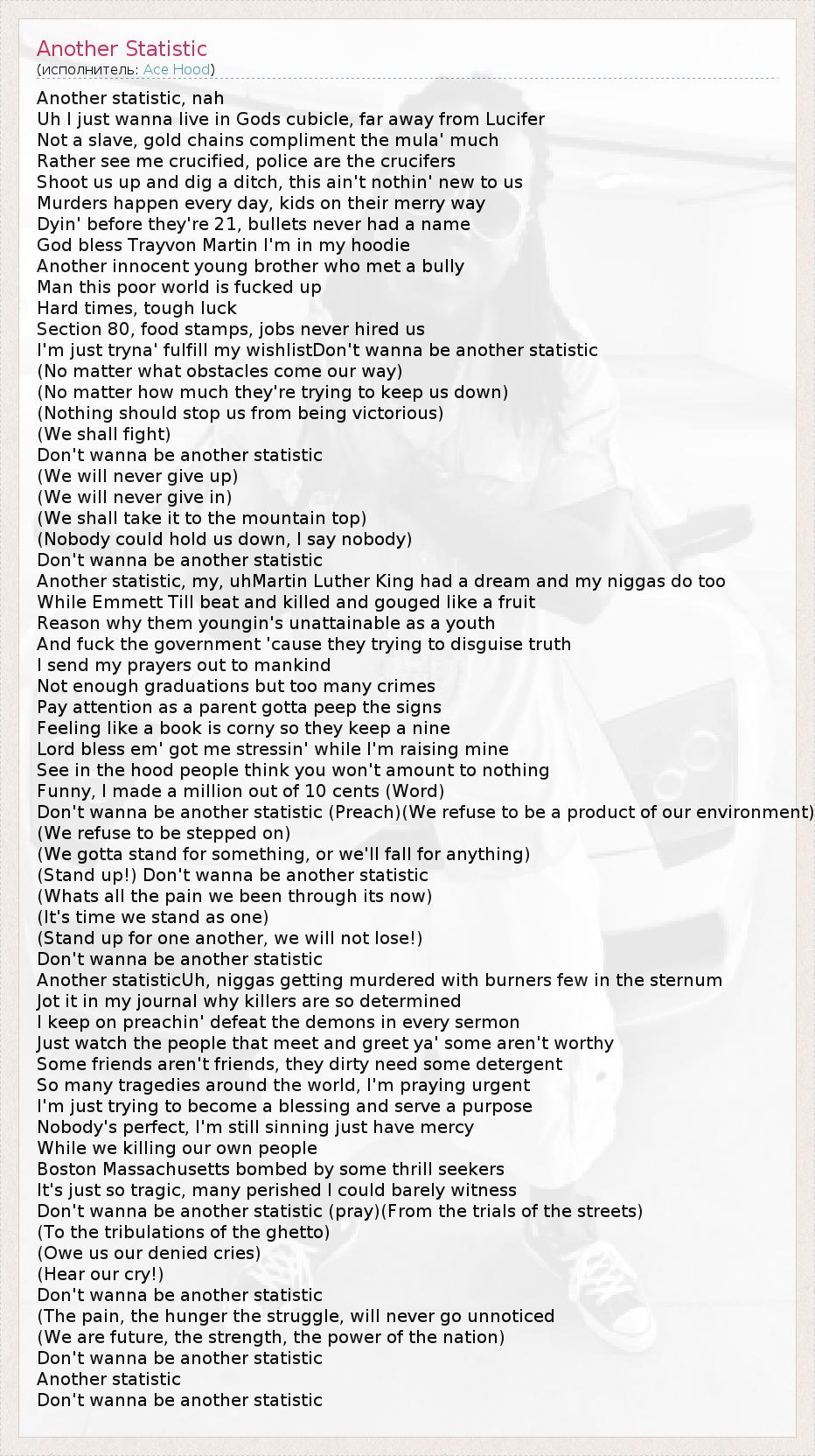 А как ты думаешь, о чем песня "Another Statistic" ?