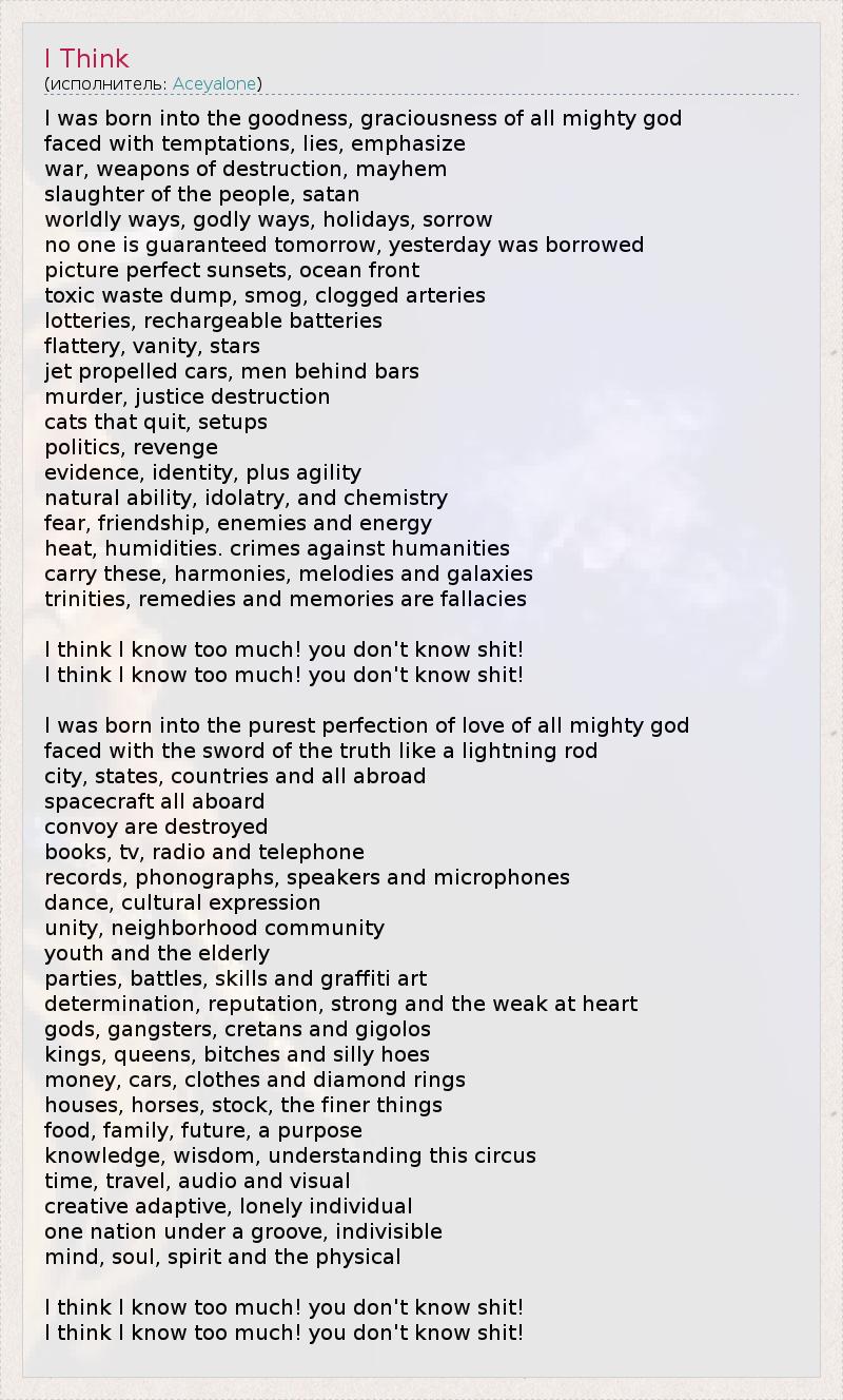 А как ты думаешь, о чем песня "I Think" ?