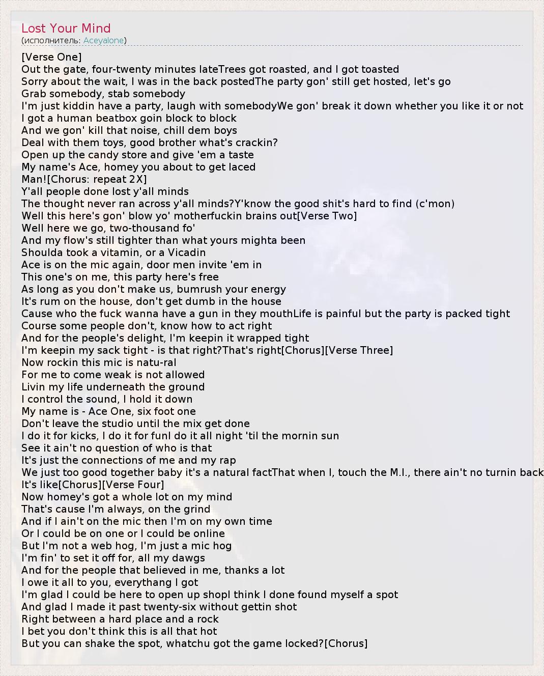 А как ты думаешь, о чем песня "Lost Your Mind" ?