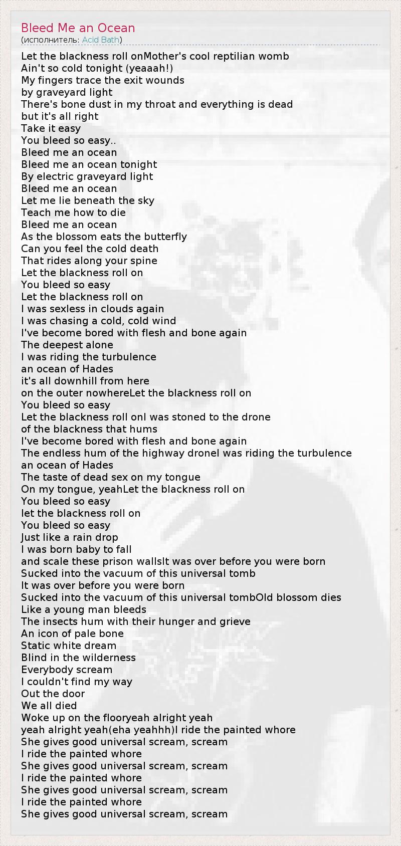 А как ты думаешь, о чем песня "Bleed Me an Ocean" ?