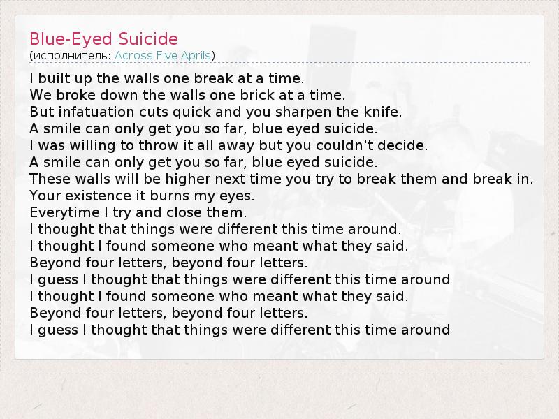 А как ты думаешь, о чем песня "Blue-Eyed Suicide" ?