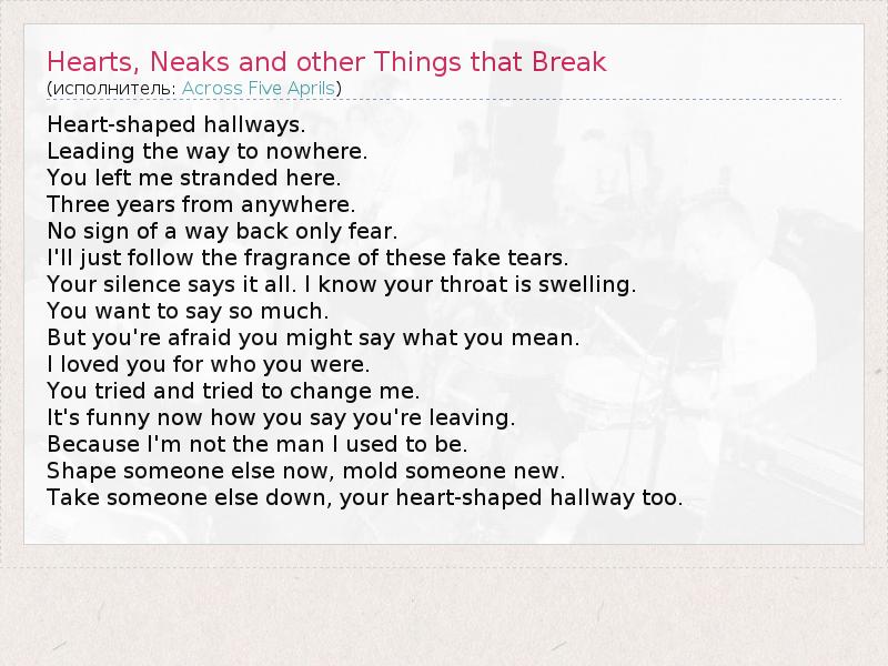 ГлавнаяИсполнителиAcross Five AprilsHearts, Neaks and other Things that Break