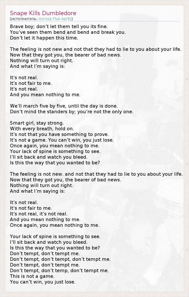 А как ты думаешь, о чем песня "Snape Kills Dumbledore" ?