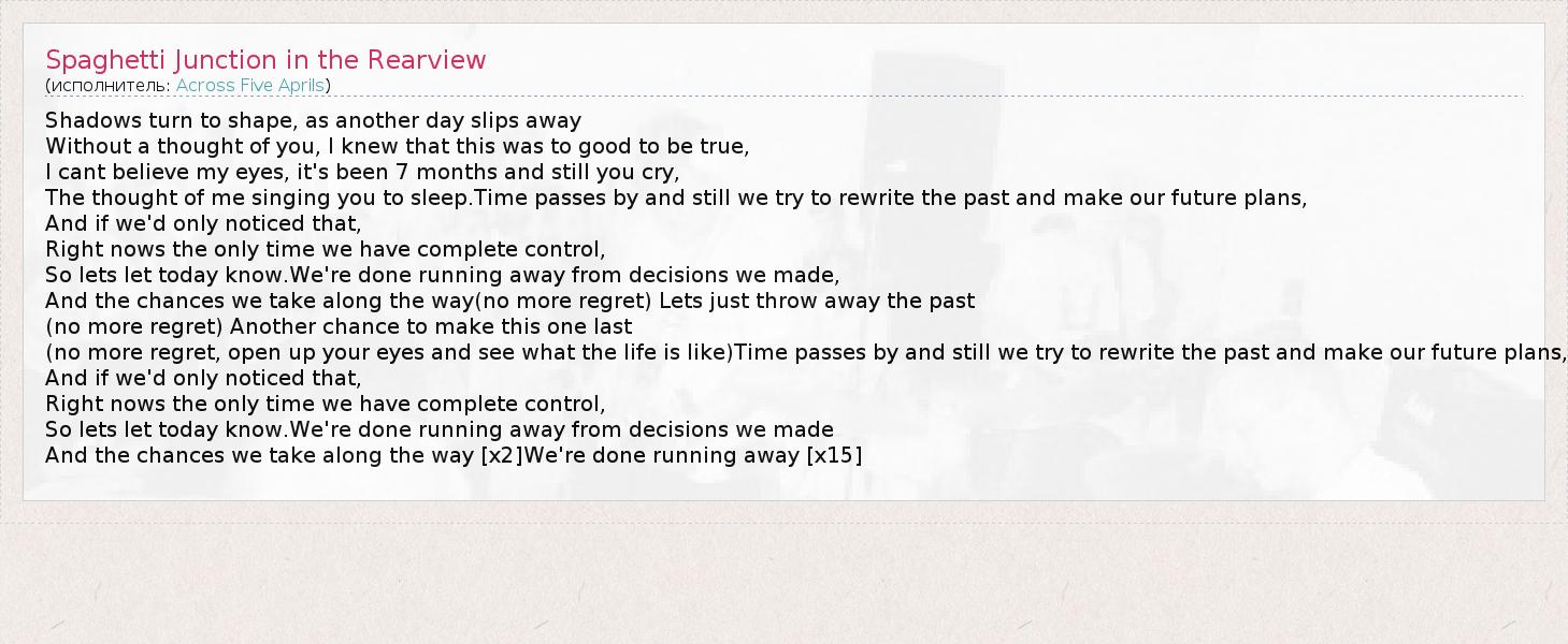 ГлавнаяИсполнителиAcross Five AprilsSpaghetti Junction in the Rearview