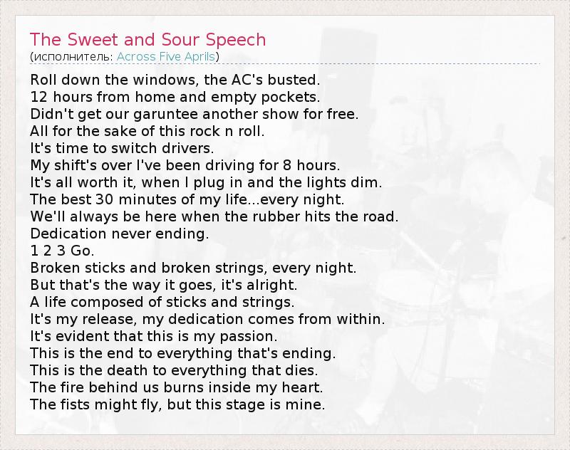 А как ты думаешь, о чем песня "The Sweet and Sour Speech" ?