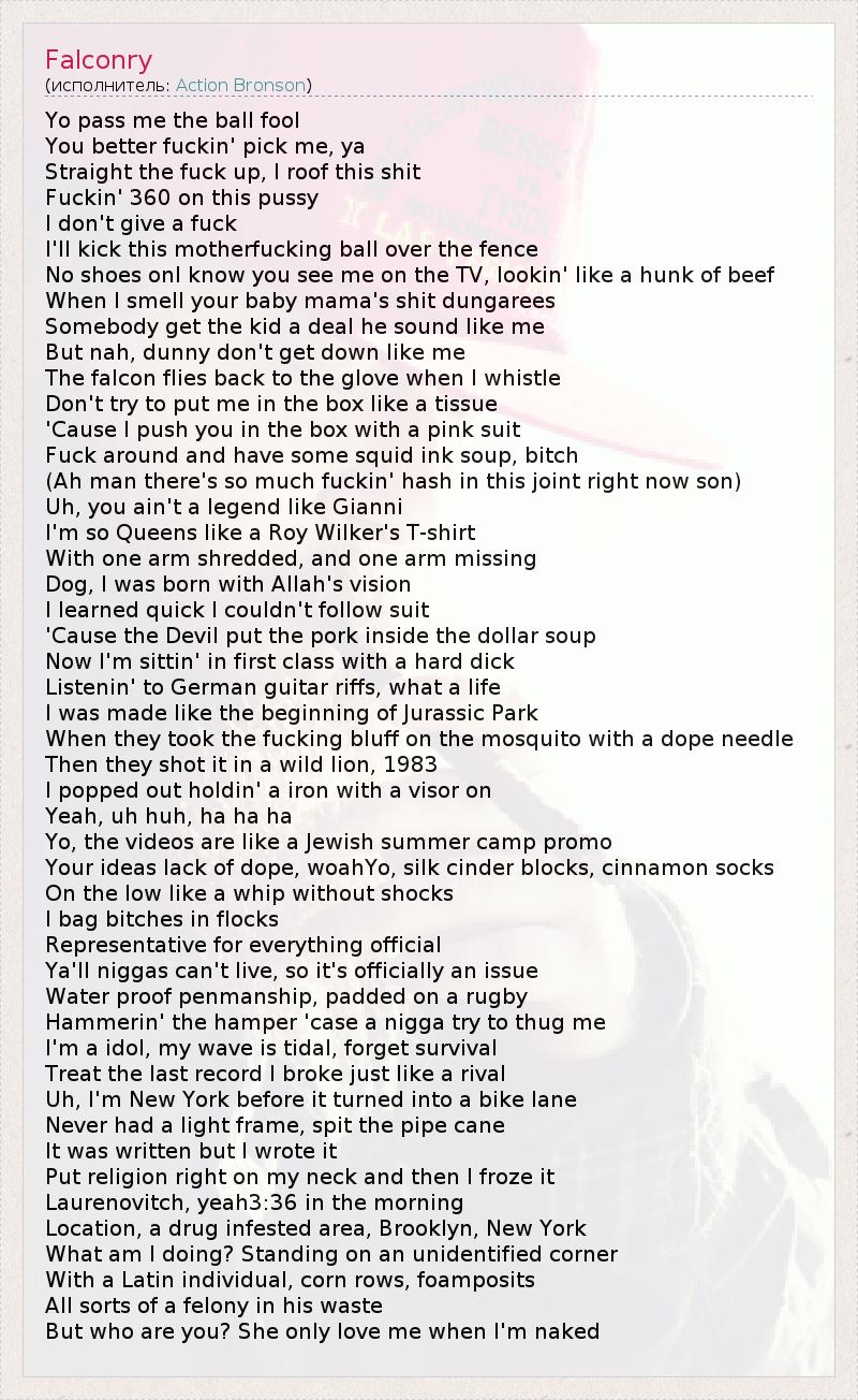Это интересно:Двадцатисемилетний упитанный молодой человек довольно долго не подразумевал никаких рэп-талантов, предпочитая работать поваром, пока по настоянию друга не взялся-таки за сочинительство. Качающий рэп со смехом в рыжую бороду, о еде, подружках и прочем досуге уже не мальчика - своеобразная новая кровь старого рэпа. Альбомы "Dr. Lecter" и только что вышедший совместный со Static "Well Done"... продолжение