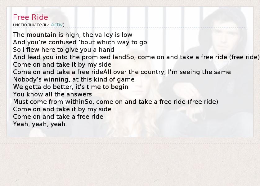 And lead you into the promised landSo, come on and take a free ride (free ride)