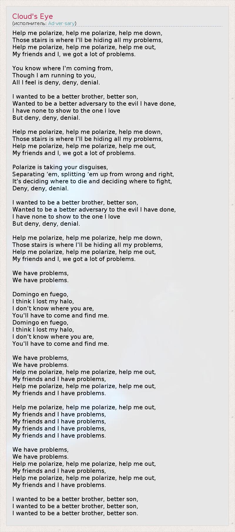 А как ты думаешь, о чем песня "Cloud's Eye" ?