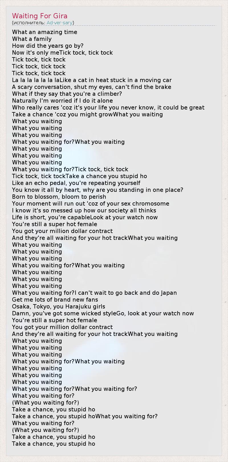 А как ты думаешь, о чем песня "Waiting For Gira" ?
