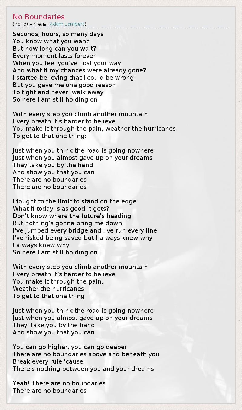 А как ты думаешь, о чем песня "No Boundaries" ?