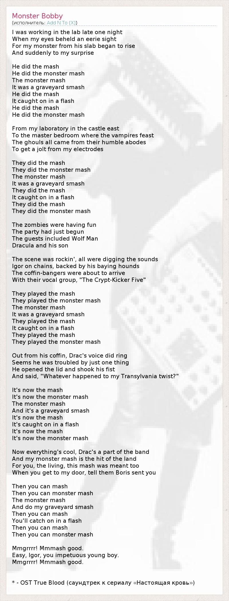 А как ты думаешь, о чем песня "Monster Bobby" ?