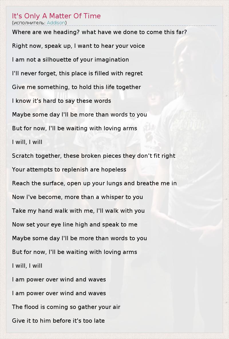 ГлавнаяИсполнителиAddisonIt's Only A Matter Of Time
