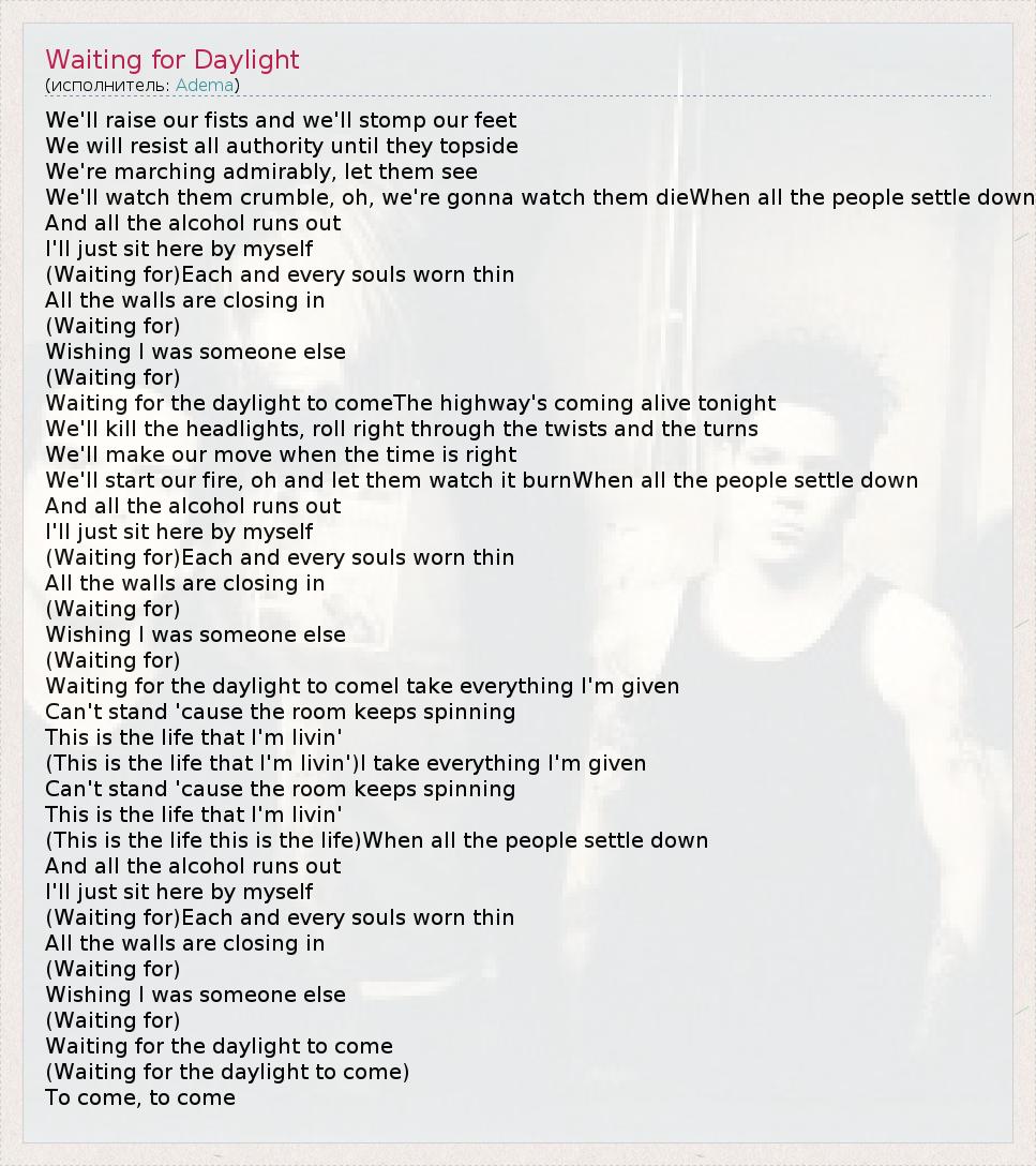 А как ты думаешь, о чем песня "Waiting for Daylight" ?