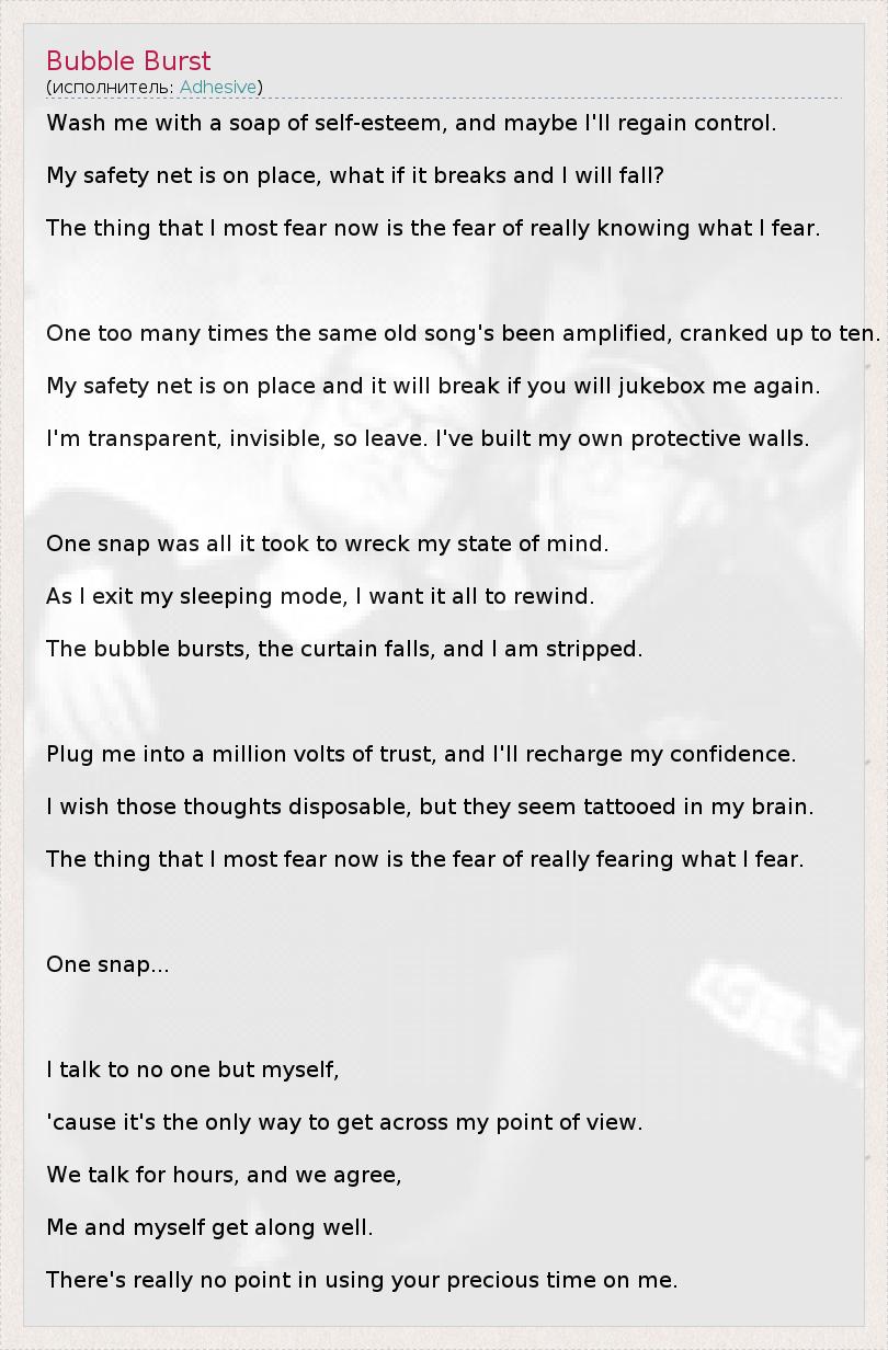 А как ты думаешь, о чем песня "Bubble Burst" ?