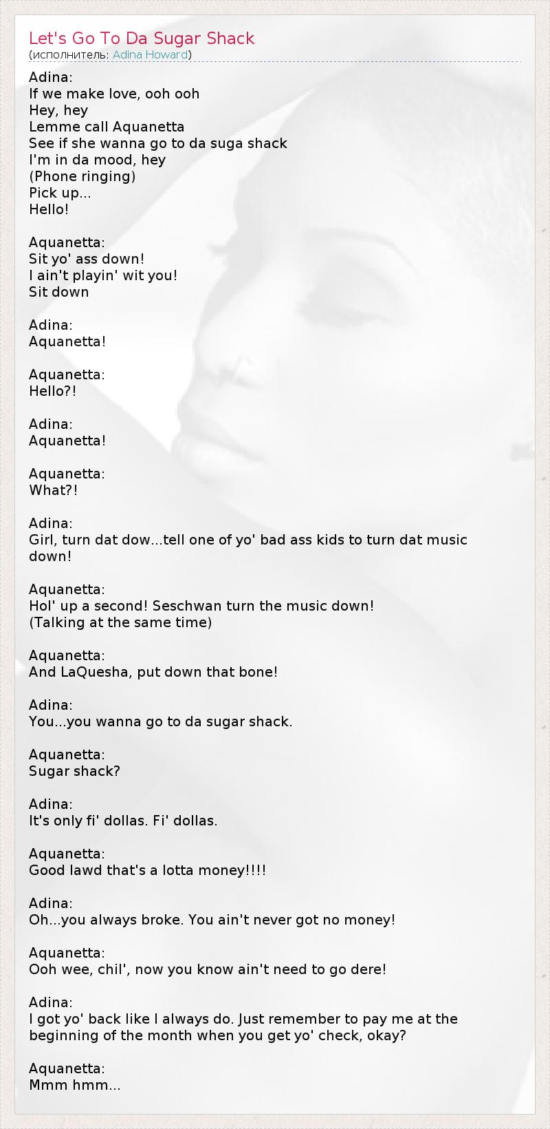 ГлавнаяИсполнителиAdina HowardLet's Go To Da Sugar Shack