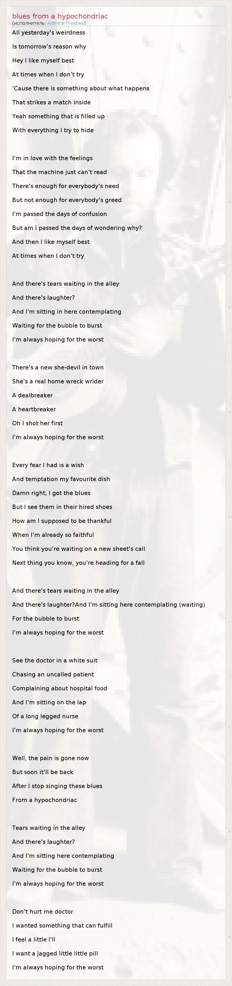А как ты думаешь, о чем песня "blues from a hypochondriac" ?