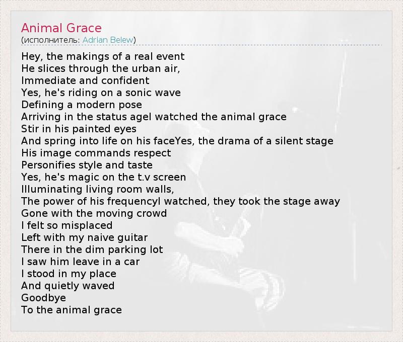 А как ты думаешь, о чем песня "Animal Grace" ?