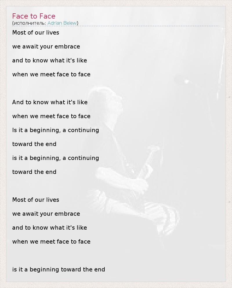 А как ты думаешь, о чем песня "Face to Face" ?