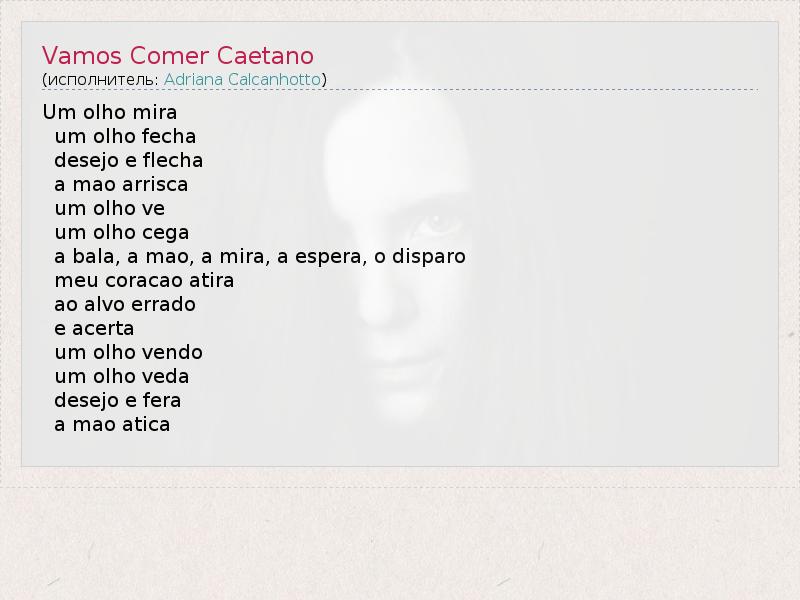 А как ты думаешь, о чем песня "Vamos Comer Caetano" ?