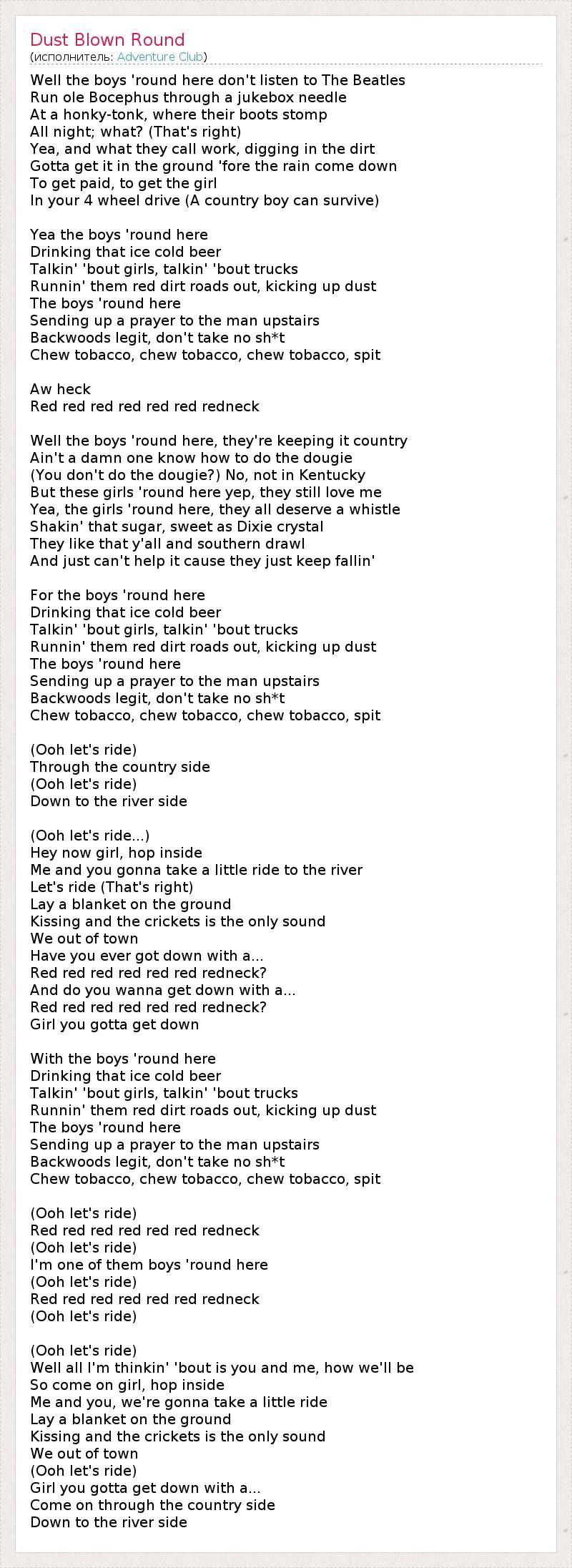Red red red red red red redneck?
