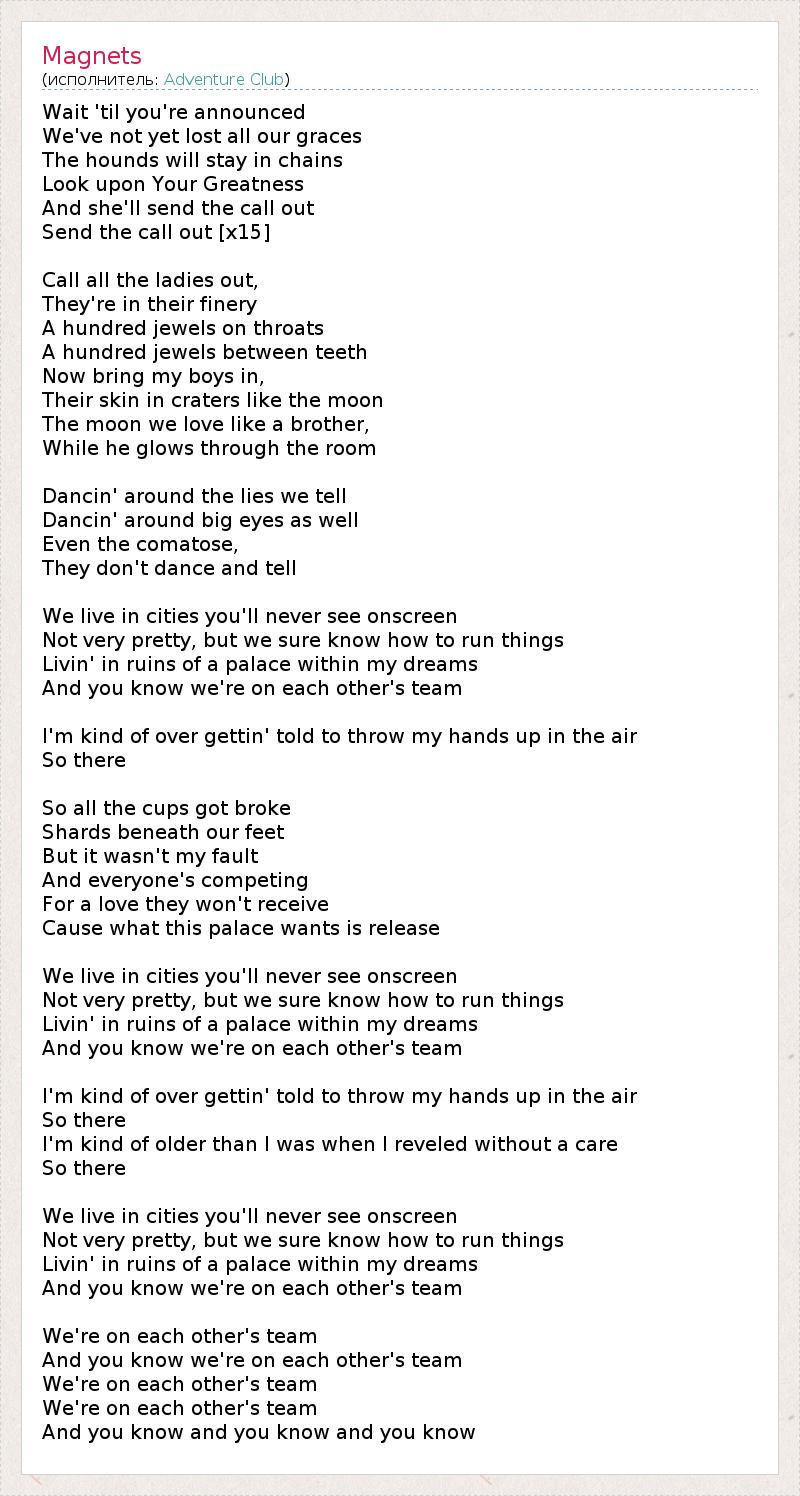 Ведь всё, чего мы хотим в этом дворце, тому здесь не место.