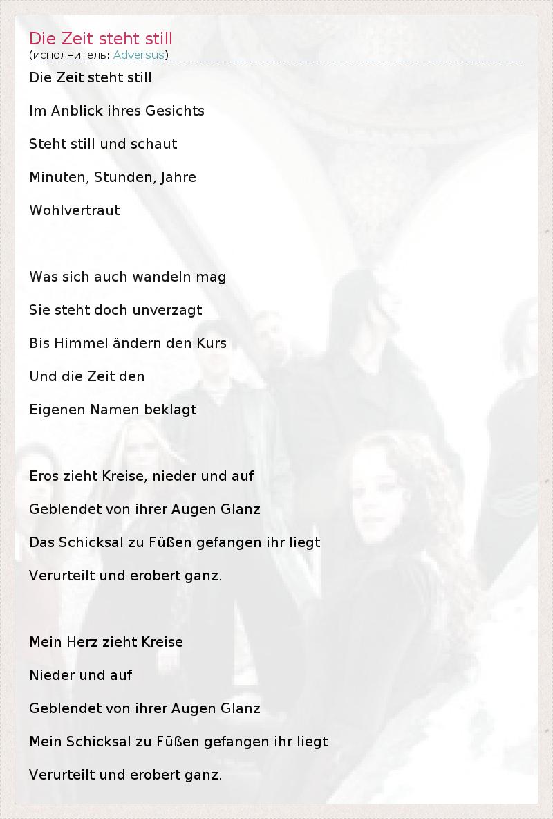 А как ты думаешь, о чем песня "Die Zeit steht still" ?