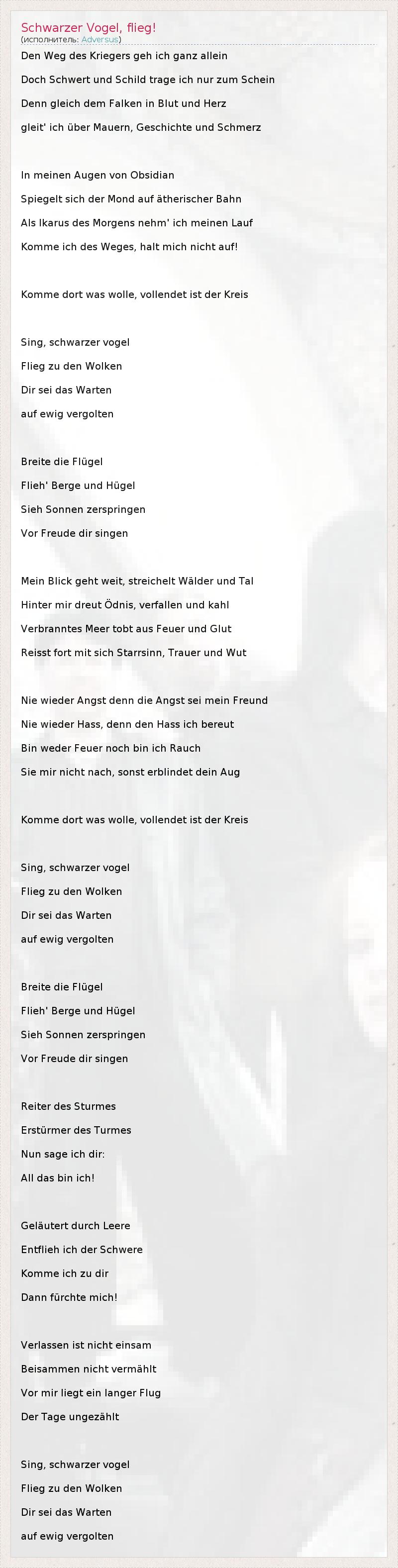 А как ты думаешь, о чем песня "Schwarzer Vogel, flieg!" ?