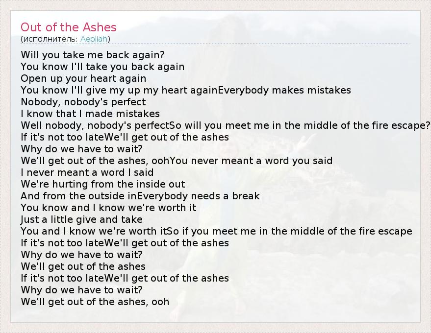 А как ты думаешь, о чем песня "Out of the Ashes" ?