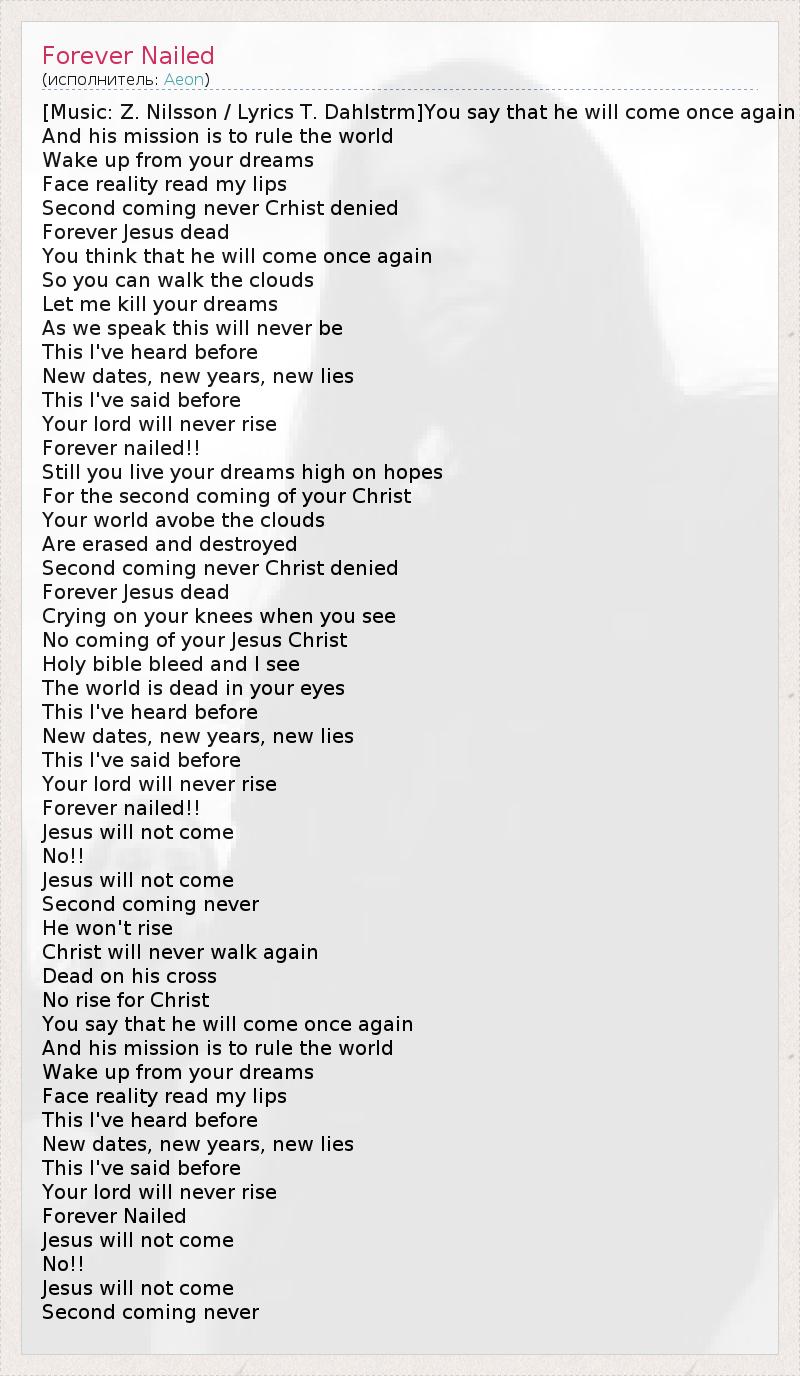 А как ты думаешь, о чем песня "Forever Nailed" ?