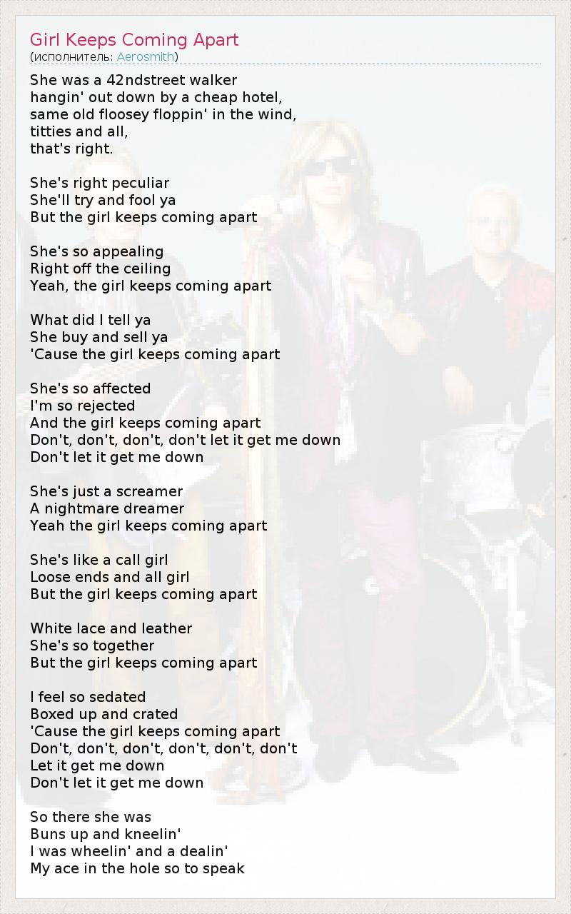 ГлавнаяИсполнителиAerosmithGirl Keeps Coming Apart