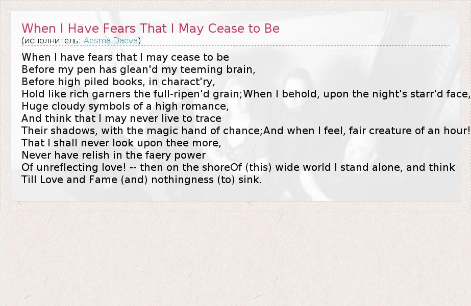 А как ты думаешь, о чем песня "When I Have Fears That I May Cease to Be" ?
