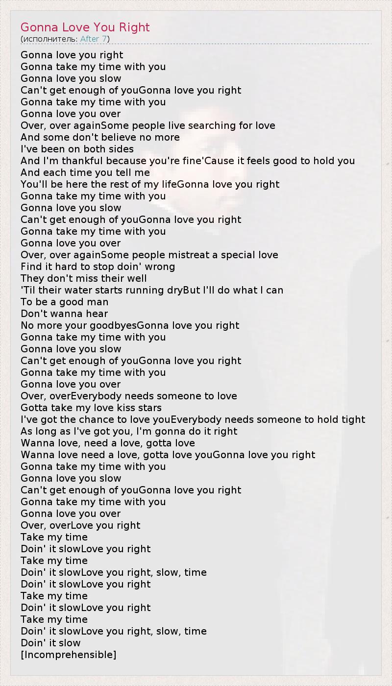 А как ты думаешь, о чем песня "Gonna Love You Right" ?