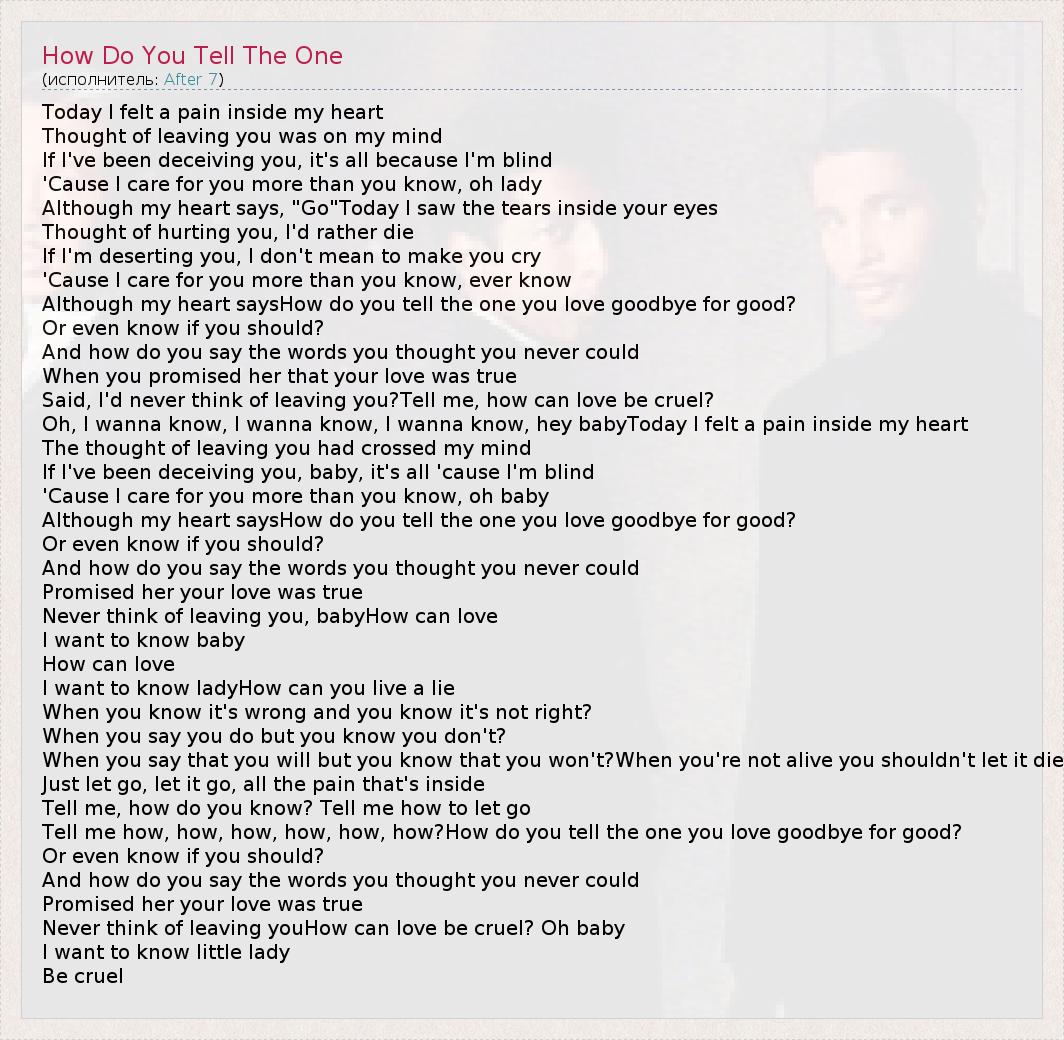Tell me how, how, how, how, how, how?How do you tell the one you love goodbye for good?