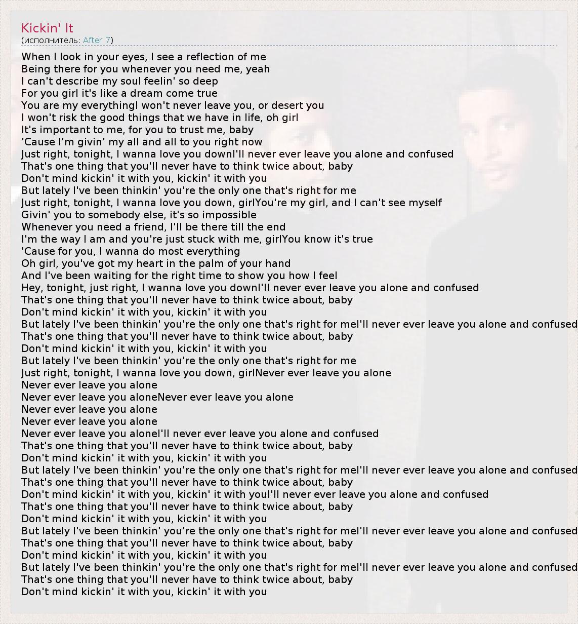 Don't mind kickin' it with you, kickin' it with youI'll never ever leave you alone and confused