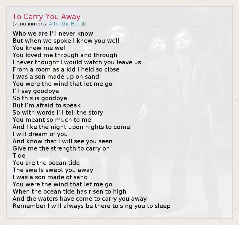 А как ты думаешь, о чем песня "To Carry You Away" ?