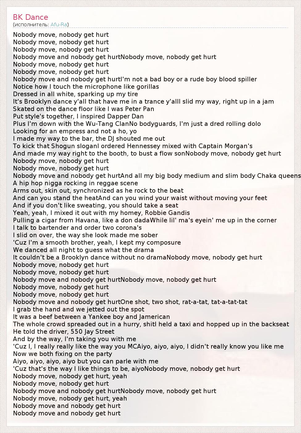 Nobody move and nobody get hurtNobody move, nobody get hurt