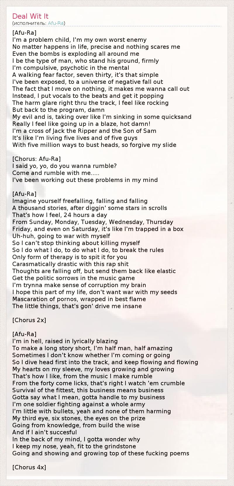 А как ты думаешь, о чем песня "Deal Wit It" ?