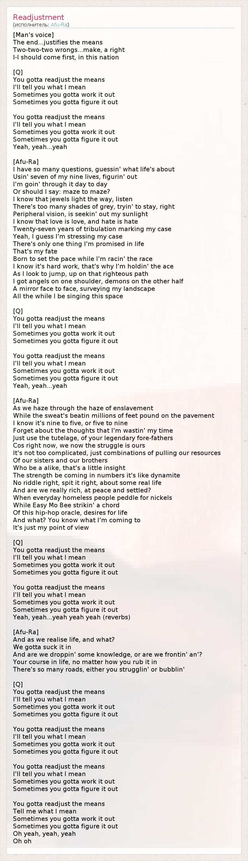 А как ты думаешь, о чем песня "Readjustment" ?