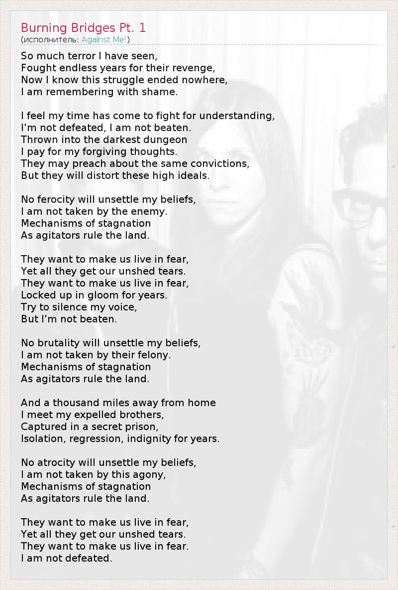 А как ты думаешь, о чем песня "Burning Bridges Pt. 1" ?