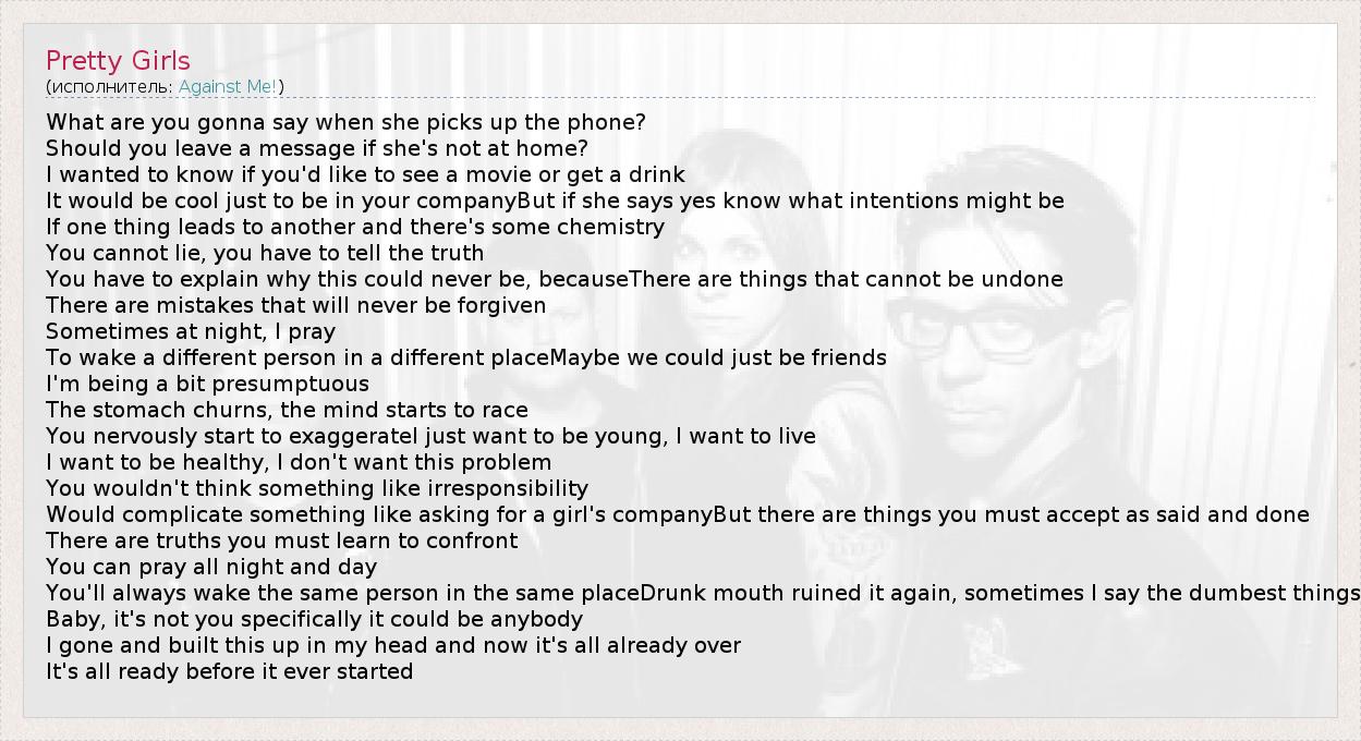 А как ты думаешь, о чем песня "Pretty Girls" ?