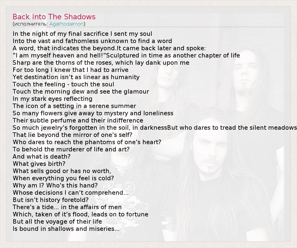 А как ты думаешь, о чем песня "Back Into The Shadows" ?