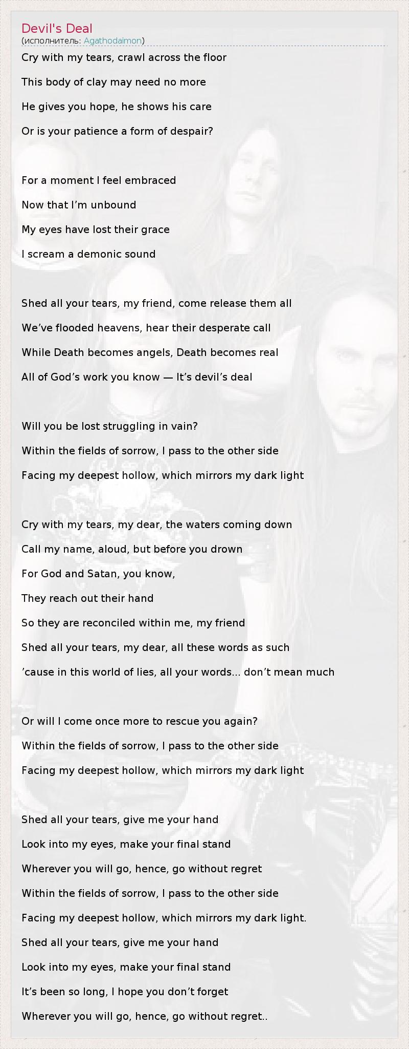 А как ты думаешь, о чем песня "Devil's Deal" ?