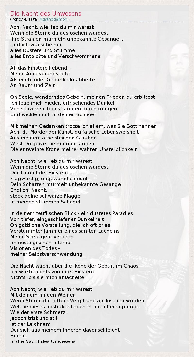 А как ты думаешь, о чем песня "Die Nacht des Unwesens" ?