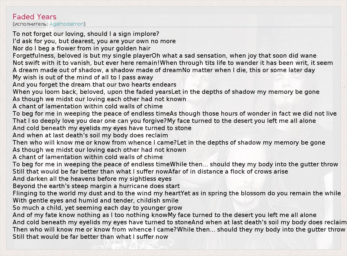 When you loom back, beloved, upon the faded yearsLet in the depths of shadow my memory be gone