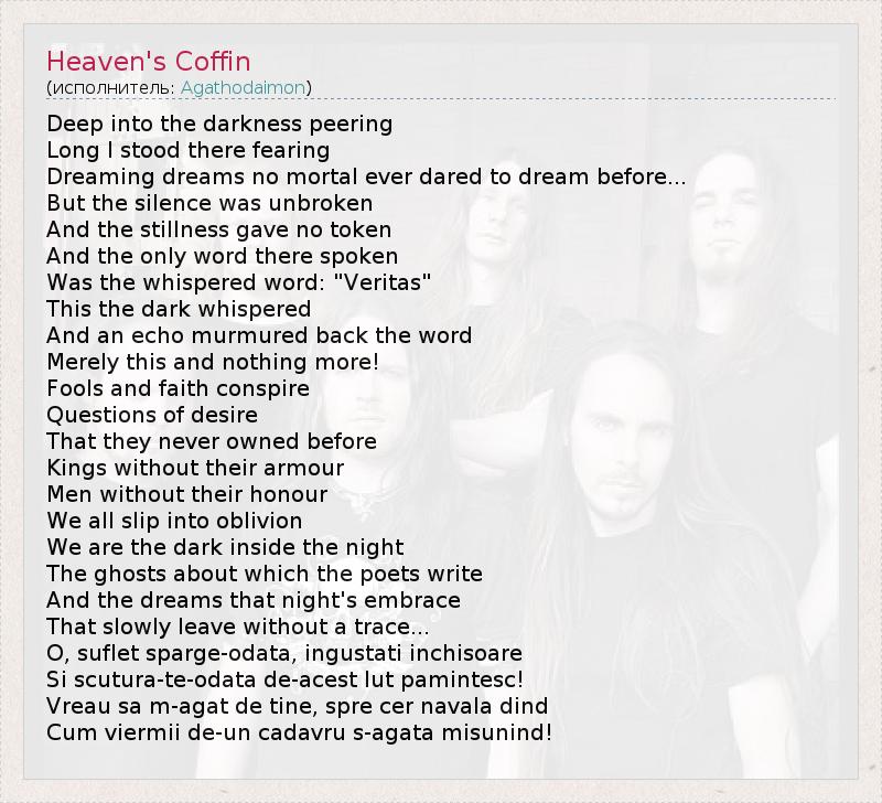 А как ты думаешь, о чем песня "Heaven's Coffin" ?